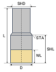 | Reamer: OverallLength (L) CuttingDiameter (D) WorkingLength (WL) ShankDiameter (SHD) ShoulderLength (SHL) ShankTaperAngle (STA) |