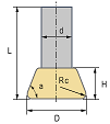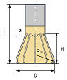 | Limited Double Radial Mill: OverallLength (L) CuttingDiameter (D) WorkingLength (WL) ShankDiameter (SHD) ShoulderLength (SHL) ShankTaperAngle (STA) Radius (Rc) TipRadius (R) ShapeLength (H) |